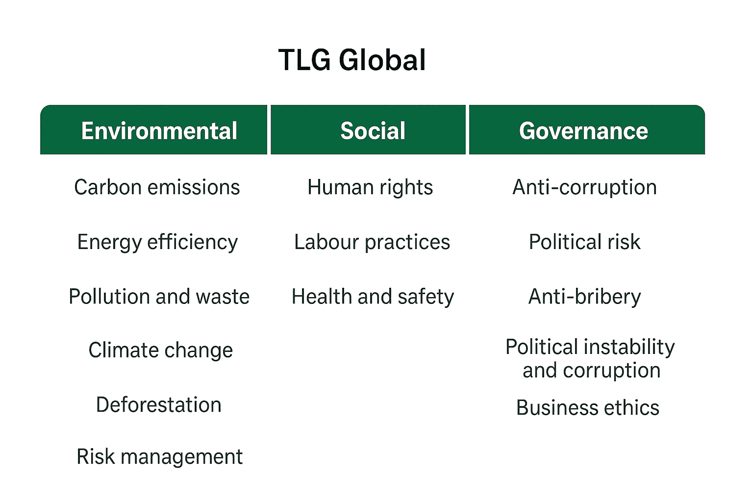 TLG Global – ESG Policy